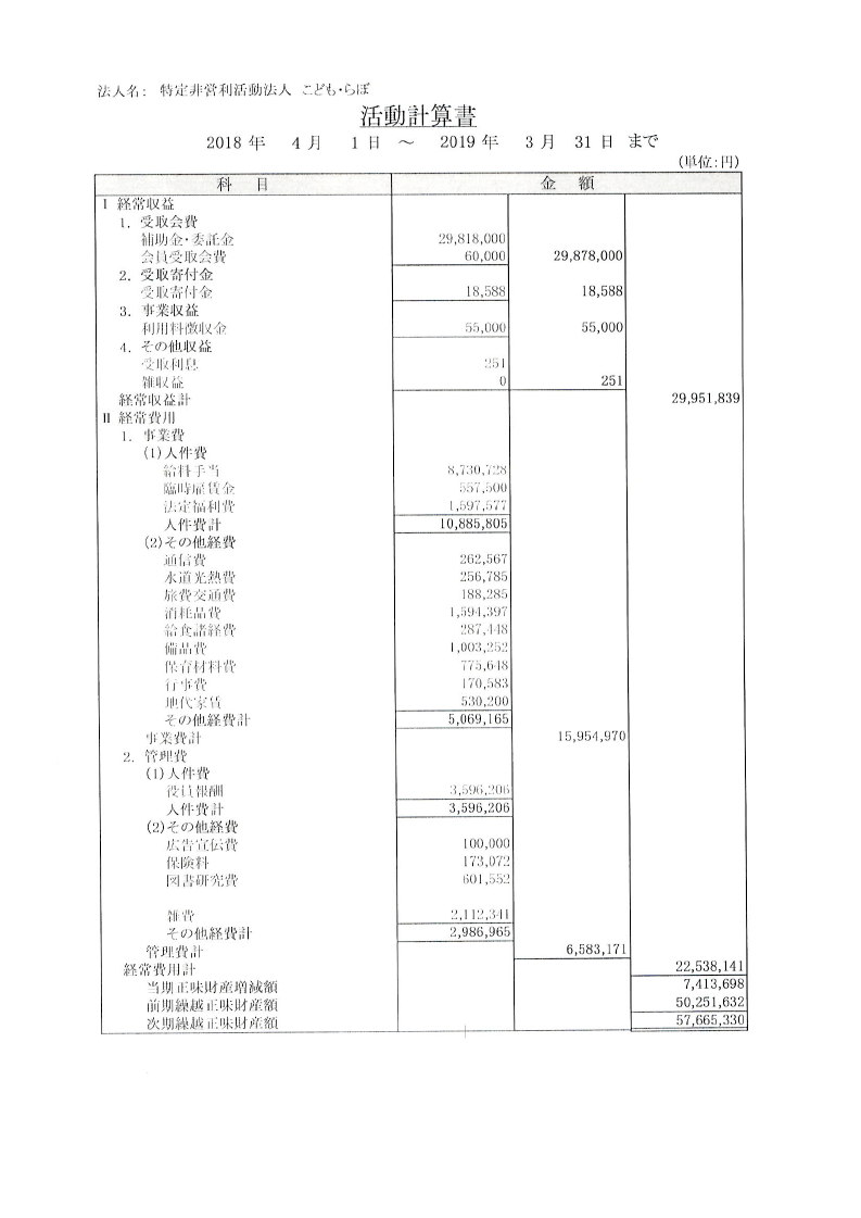 2018年度 事業会計報告